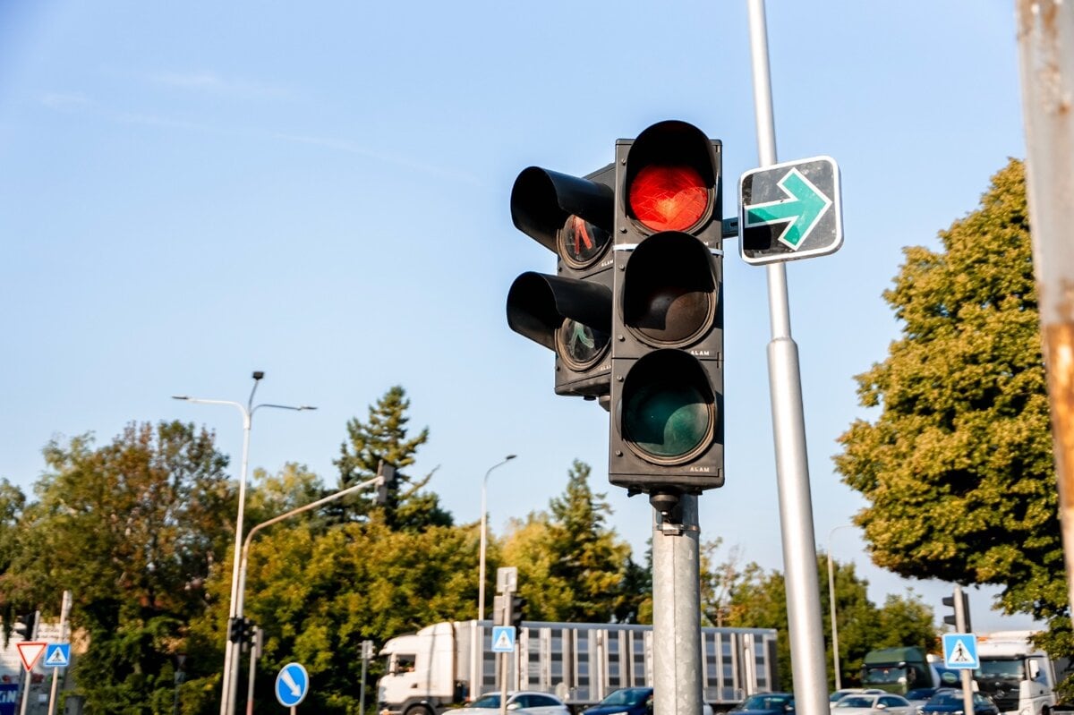 Šípka umožňuje odbočenie vpravo, aj keď na semafore svieti červená. Nie je to však automatické právo za každých okolností.