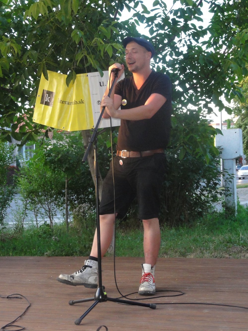 Básnickí performeri počas Slam poetry v Trafačke